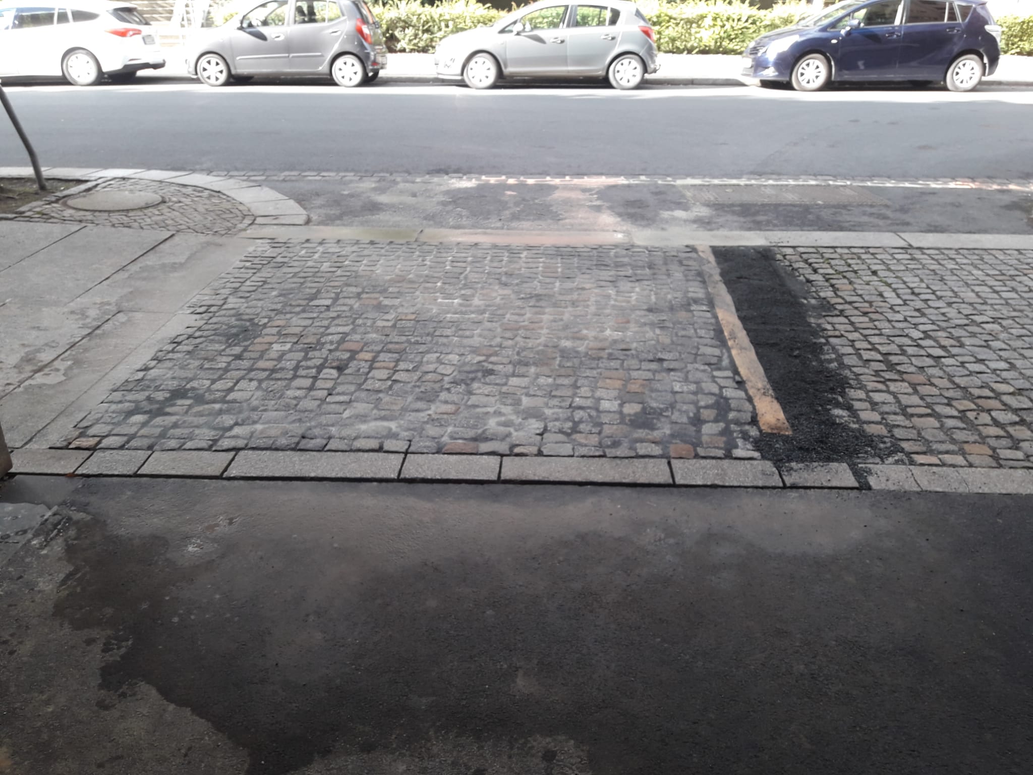 Sanierung eines Kindergartens in Dresden, mit Trockenlegung, Verlegung des geborgenen Kleinpflasters aber auch das Ergänzen von fehlenden Sandsteinen.